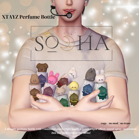 The XTAYZ-Perfum line is a collection of original, collectible perfume bottles designed for Second Life. More than just décor, these bottles combine visual effects, interactivity, and personal expression